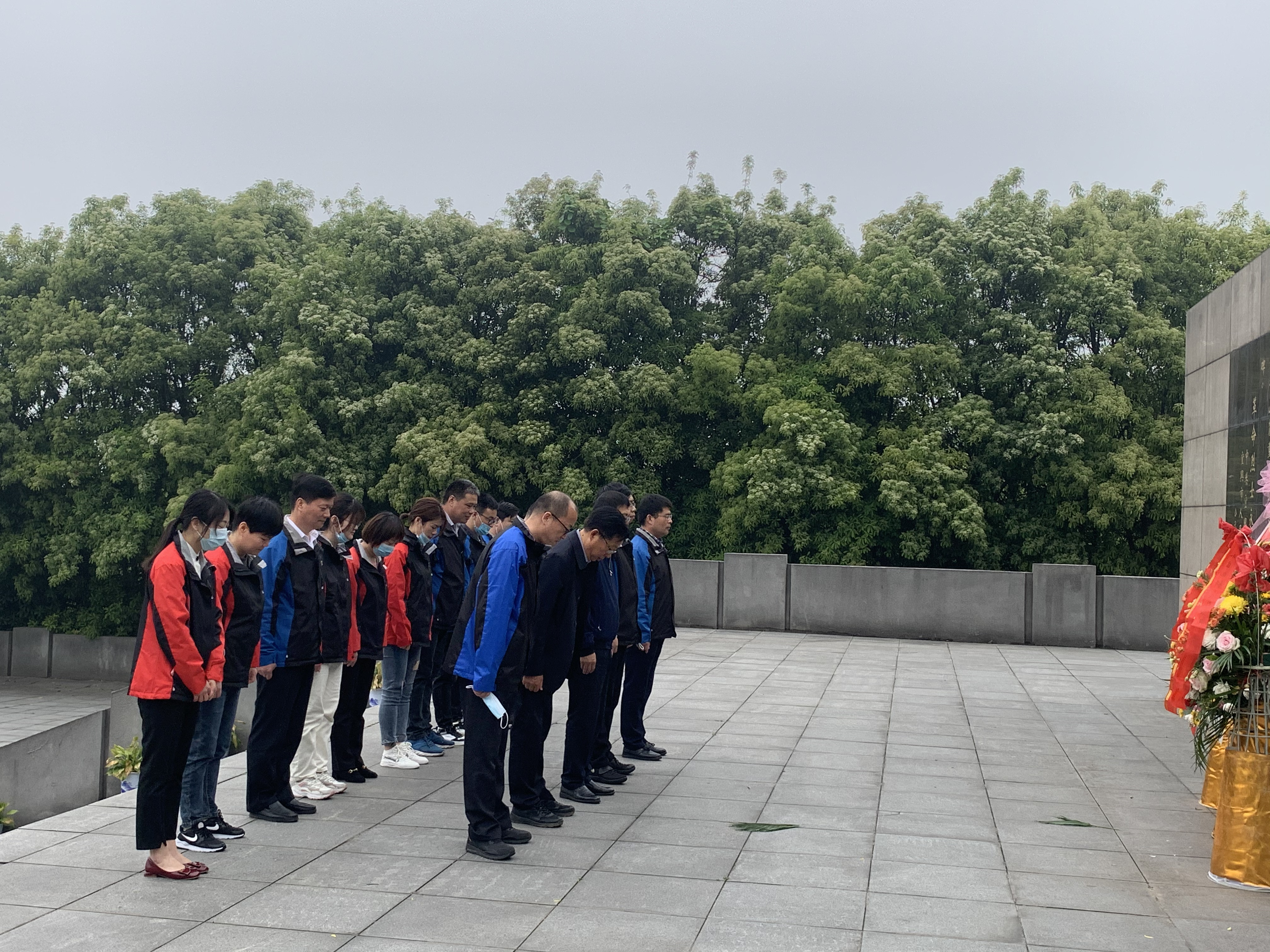 首先,在共昌党委徐书记、周书记和永昌支部石书记带领下,永昌支部出席活动的全体党员和积极份子肃立在革命烈士纪念碑前,向烈士默哀、敬献鲜花。敬献花篮后,全体成员三鞠躬并瞻仰了革命烈士纪念碑。